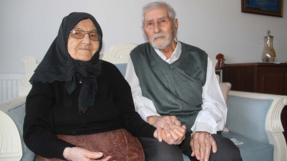 Münevver (95) ile Mehmet Ali Ülvan (99) çifti, 77 yıl önce ailelerinin kararıyla evlendi.