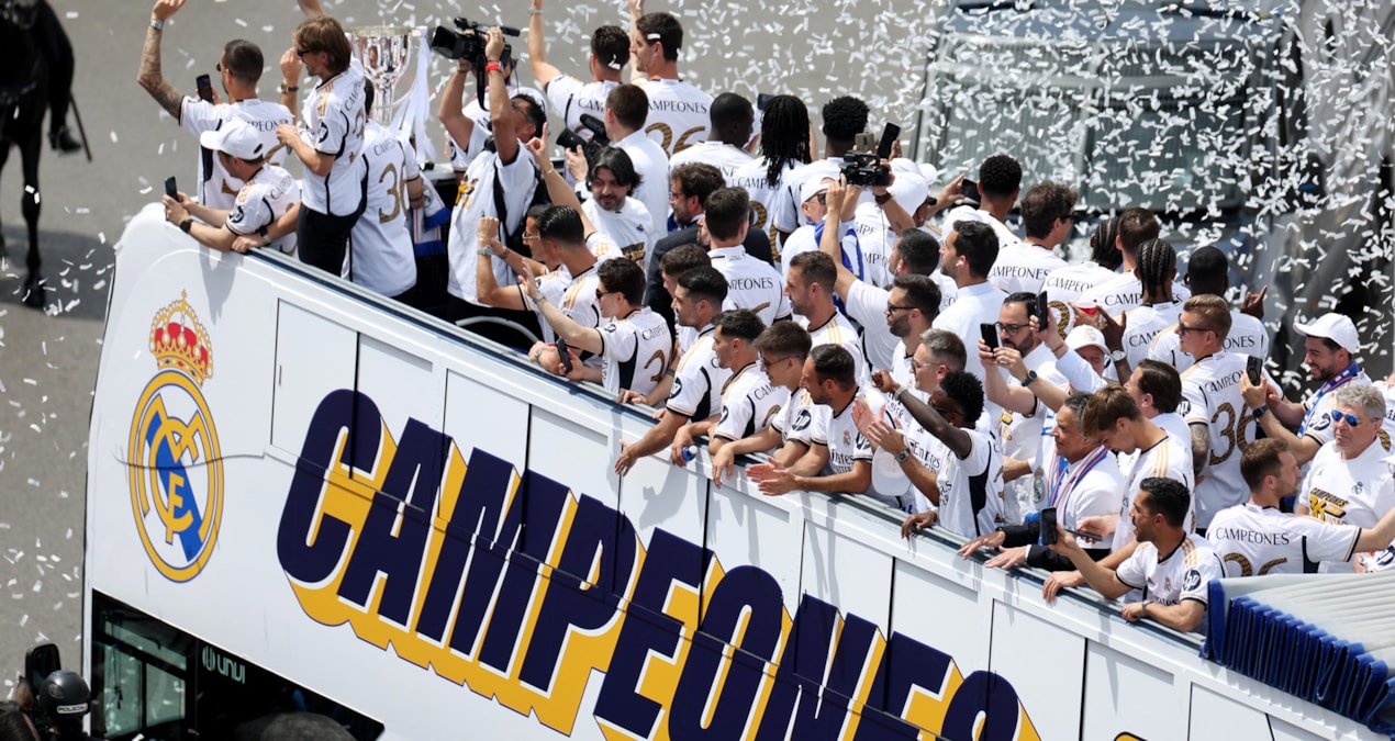 Bu sezon İspanya Süper Kupası'ndan sonra lig şampiyonluğunu da kazanan Real Madrid'in kent merkezindeki kutlamalarını binlerce taraftarı izledi.