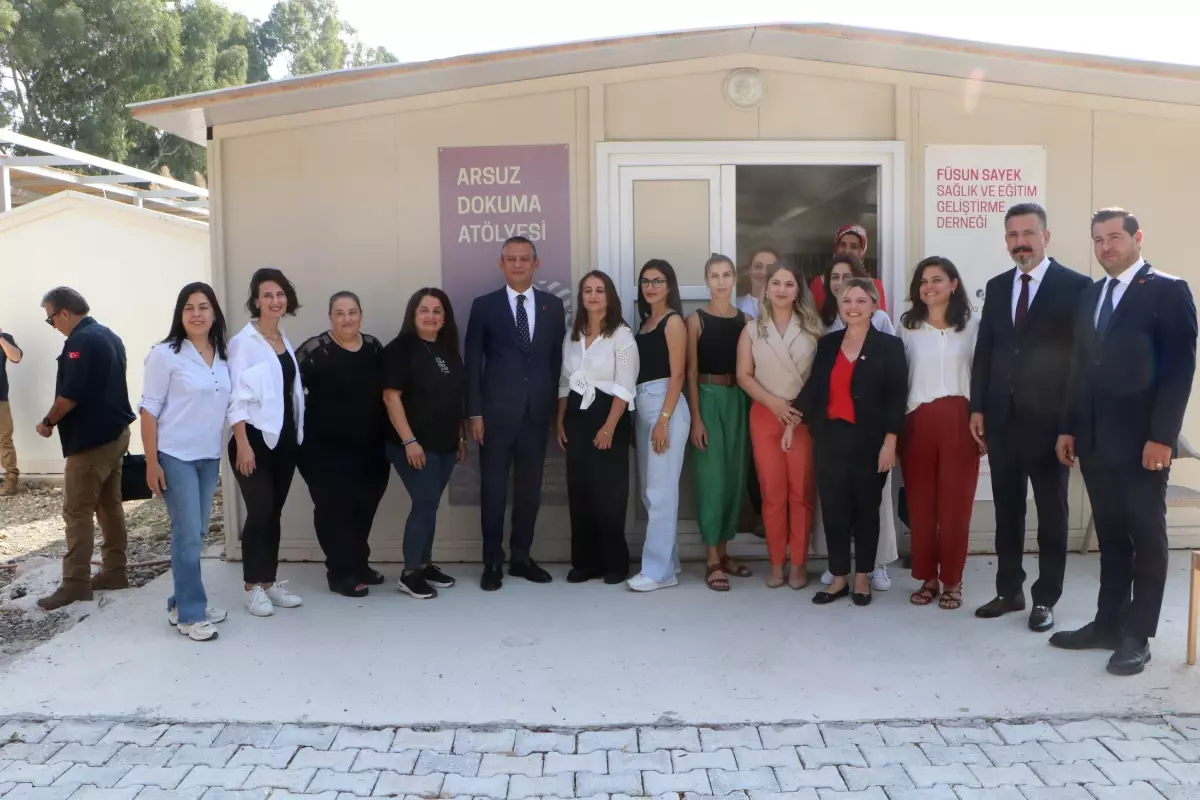 CHP Genel Başkanı Özgür Özel, Merkez Yönetim Kurulu toplantısına katılmak üzere Hatay'ın Arsuz ilçesine geldi. Özel, MYK toplantısının yapılacağı Füsun Sayek Sağlık ve Eğitim Geliştirme Derneği'nin konteynerlerinde incelemelerde bulundu. Dokuma tezgahının başına geçen Özgür Özel, kadınlarla birlikte kilim dokudu. Özel ve beraberindeki MYK üyeleri, daha sonra basına kapalı toplantıya başladı.
