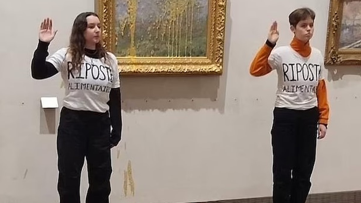 Herkes için sürdürülebilir sağlıklı gıda tedariği çağrısında bulunarak eylemi gerçekleştiren Riposte Alimentaire isimli grup, ocak ayında Louvre Müzesi'nin yine cam arkasında bulunan Mona Lisa tablosuna yapılan çorba saldırısını da üstlenmişti.