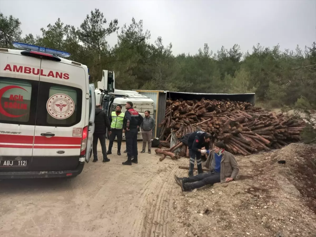 Şaban P. (39) yönetimindeki tomruk yüklü 54 RG 625 plakalı kamyon, Vezirhan beldesi Ocaklar Yolu mevkisinde kontrolden çıkarak devrildi.