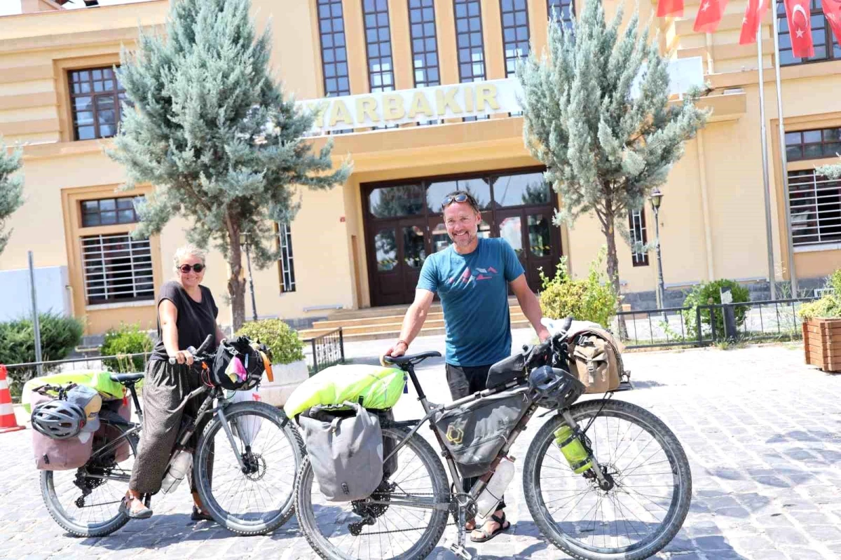Danimarkalı Charlotte Eliassen ve Jesper Vendelbo çifti, 1 Nisan’da ülkelerinden yola çıkarak dünyayı gezme kararı aldı. 140 gündür pedal çevirerek gezen çiftin durağı Diyarbakır oldu.