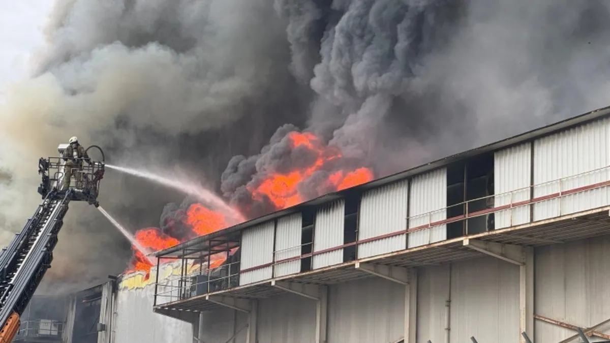 Yangın sırasında gökyüzünü yoğun duman kapladı.