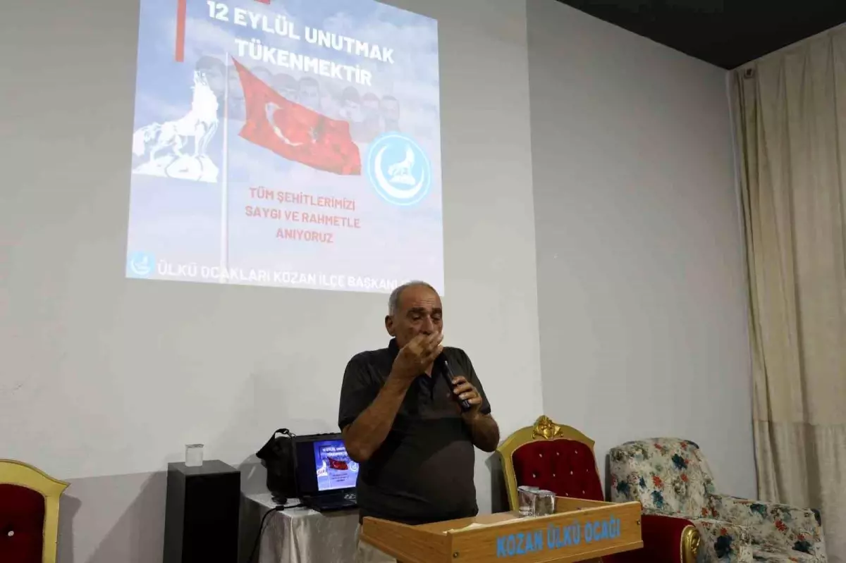 Kozan Ülkü Ocakları tarafından düzenlenen program ile ilçede 12 Eylül şehitlerini anma etkinliği düzenlendi. Programa 12 Eylül darbesinde 5 yıl tutuklu kalan ve işkence gören 65 yaşındaki Yavuz Selim Aktaş yaşadığı işkence sürecini anlatırken, ” Türkiye’nin şu anki Türk dünyası liderliği ile rüyalarımız gerçek oldu” diye konuştu.