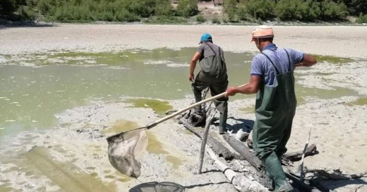 Kuruyan göldeki balıklar kurtarıldı, başka bir göle nakledildi