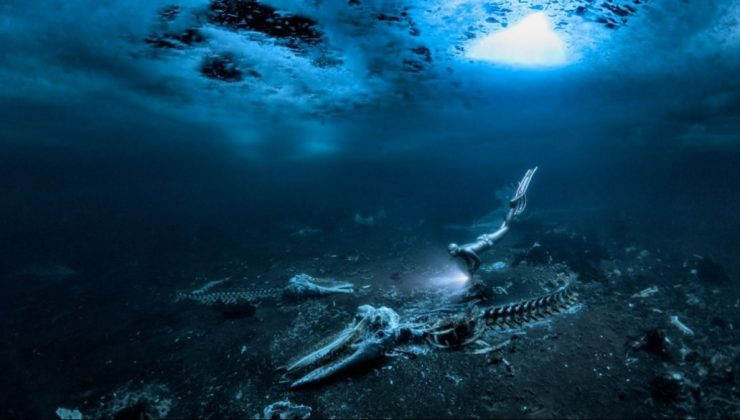 Bu yılın en iyi sualtı fotoğrafı olarak değerlendirilen “Whale Bones” adlı eser, dünyanın dört bir yanından gelen 6.500’ün üzerinde fotoğrafın galibi oldu.